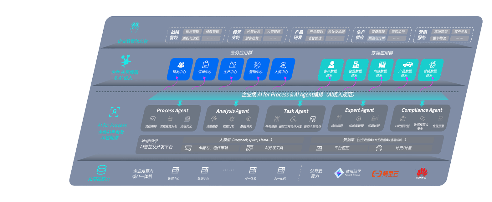 端到端的一站式AI工作空间深度融合了从企业战略规划到日常经营的全流程业务板块,,定向解决车企内部领域多、、部门多、、链条长、、场景碎片化等难题,,,支持车企快速构建以AI为核心的生产力写作体系,,,,实现任务执行与AI能力的无缝集成与交互